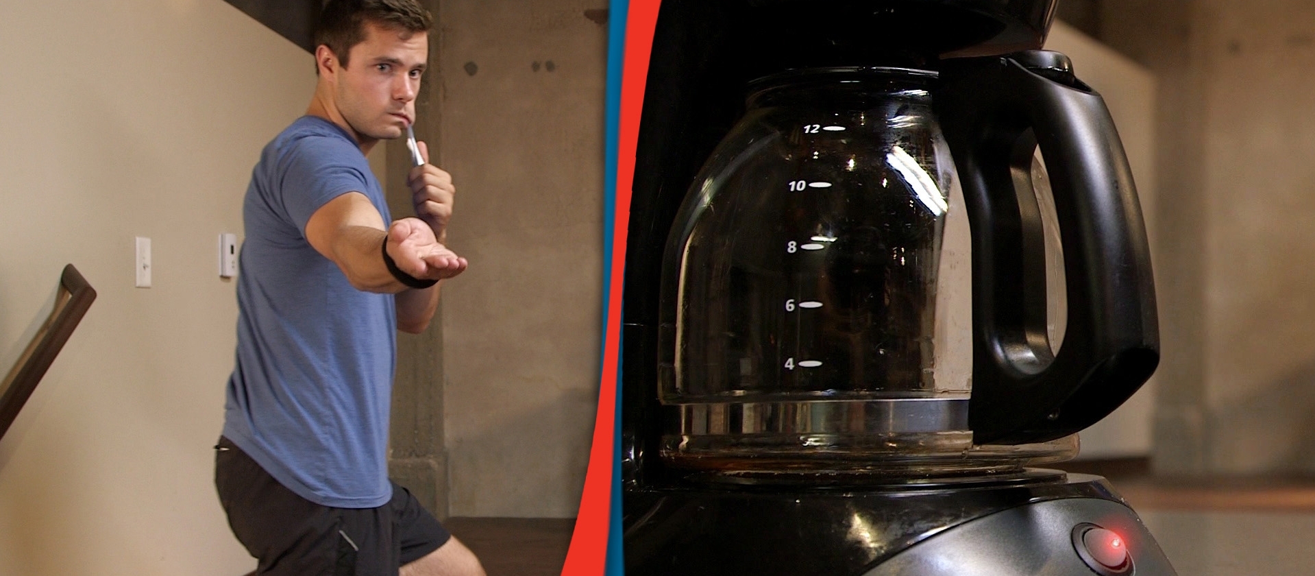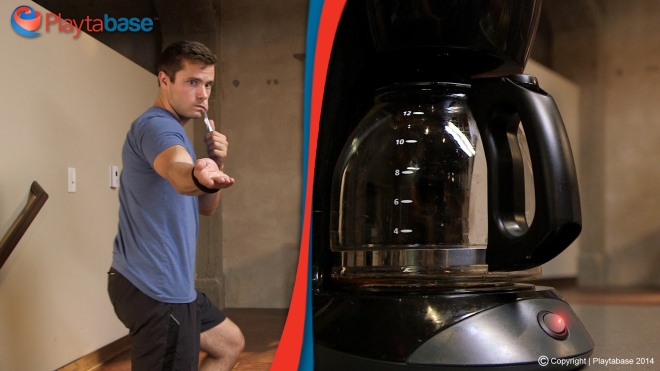 下圖為Playtabase的宣傳圖片所揭示的使用情境,Reemo讓使用者在早上起床時可邊刷牙邊利用手上Reemo腕帶控制咖啡機。 ↓