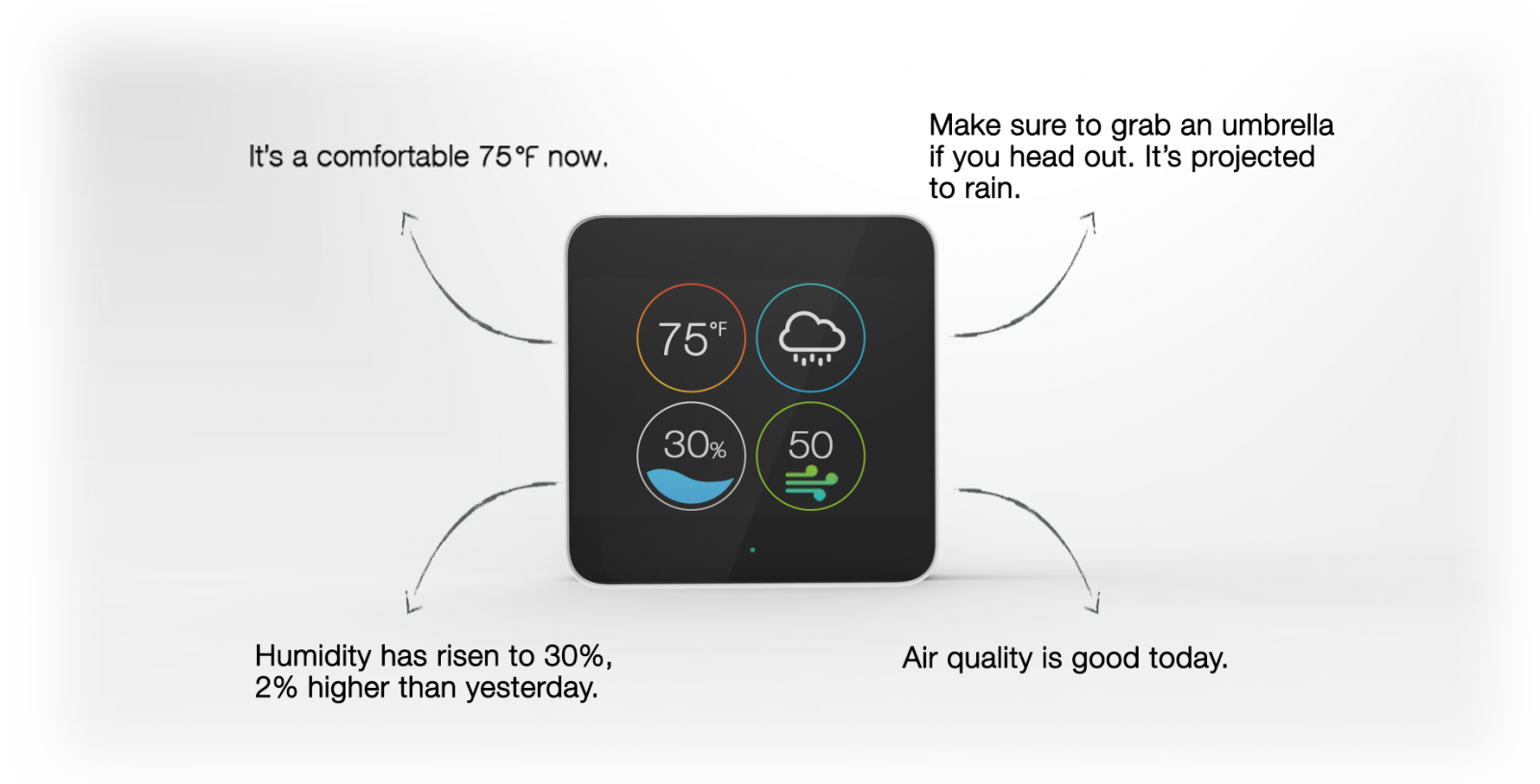 Sentri主要提供一款智慧家庭監控HD攝影機,內建感測器,可追蹤家中的生活品質資訊、長期趨勢,如家中的溫濕度、空器品質、天氣。↓