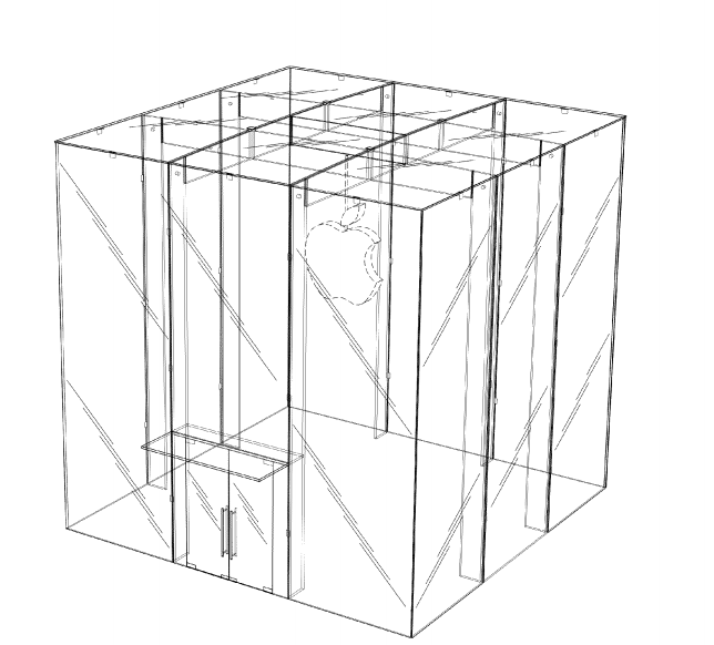 美國商標暨專利辦公室(USPTO)在近日核准蘋果於2012年所申請的玻璃立方體的建築設計專利,並給予14年的專利保護,該設計主要位於紐約曼哈頓第五大道上的蘋果直營門市前方入口。