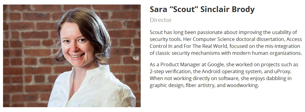 Simply Secure將由Google的產品經理Sara Sinclair Brody擔任總監,Sara在Google參與諸如雙步驟認證、Android作業系統,及uProxy等工作。她將與開放源碼社群合作開發一些簡單好用,不需艱深技術知識即可上手的安全工具。