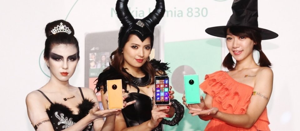 微軟邀請阿喜(中)以黑魔女扮相為手機代言。