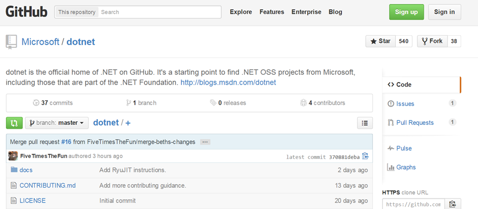 微軟也在Github上建立了一個.NET官方專案,未來.NET程式碼將在此釋出。