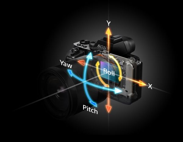 ↓α7 II內建五軸震動感應器,可偵測上下、左右、平移、旋轉產生的震動,經過計算補償修正影像。Sony強調透過五軸震動感應器,相當於增加4.5級快門速度的拍攝穩定度。以往某些拍攝場合需要腳架輔助,現在可以手持拍攝出穩定影像。