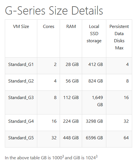 G-Series有G1到G5五種規格,處理器核心從2個到32個不等,記憶體則是自28GB至448GB,SSD儲存空間從412GB到6.59TB,持續性資料磁碟最多從4個到64個。但目前該系列僅支援美西市場。
