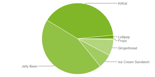 Google在本周一(2/2)公布截至2月2日前一周的Android版本市占率,第一次出現代號為「棒棒糖」(Lollipop)的Android 5.0平台,從去年10月中釋出迄今,Android 5.0的市佔率只有1.6%。