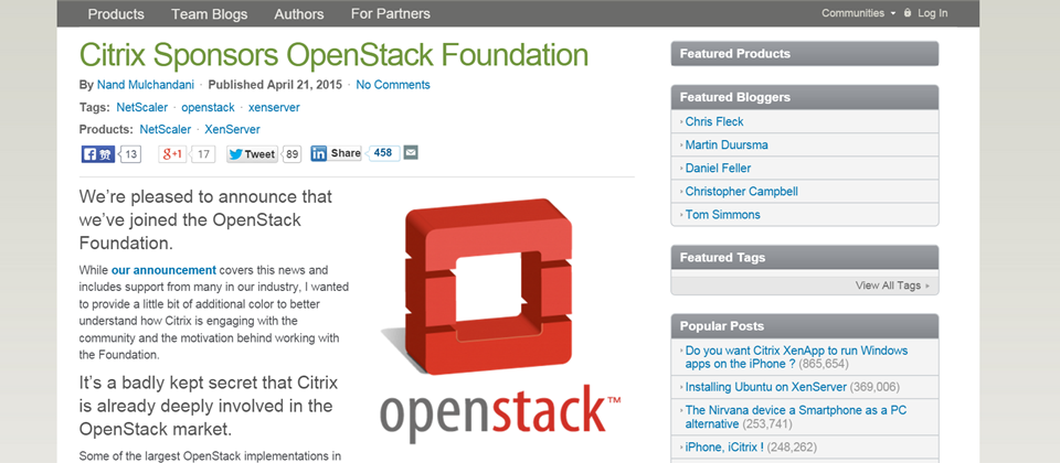 Citrix趕在OpenStack更新第11版前,投入OpenStack的懷抱,Citrix以往雲端管理平臺以CloudStack為主,然而,CloudStack發展逐漸式微,過了三年Citrix改變主意了。