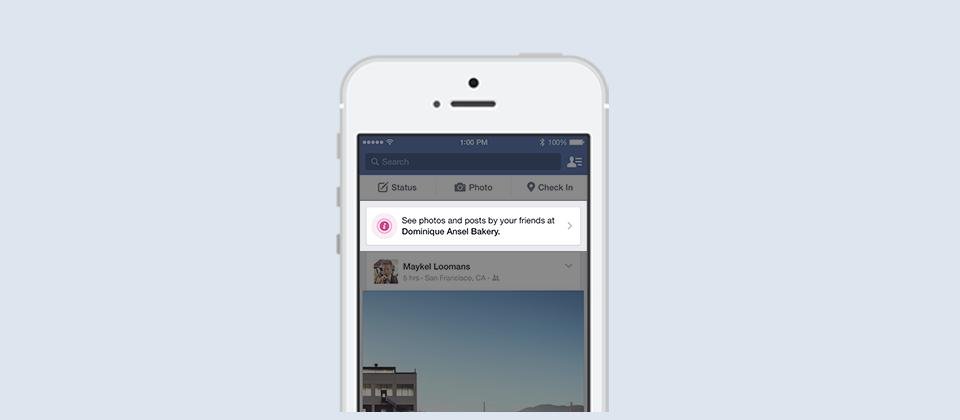Facebook指出,每個人獲得的Place Tips都是獨一無二的。Place Tips會蒐集店家或特定景點的有用資訊,像是店家的粉絲專頁貼文、餐廳菜單、招牌菜、顧客評論、零售店的營業時間、近期活動、或是友人在此店的活動與打卡紀錄等,並顯示於消費者的Facebook動態消息中。