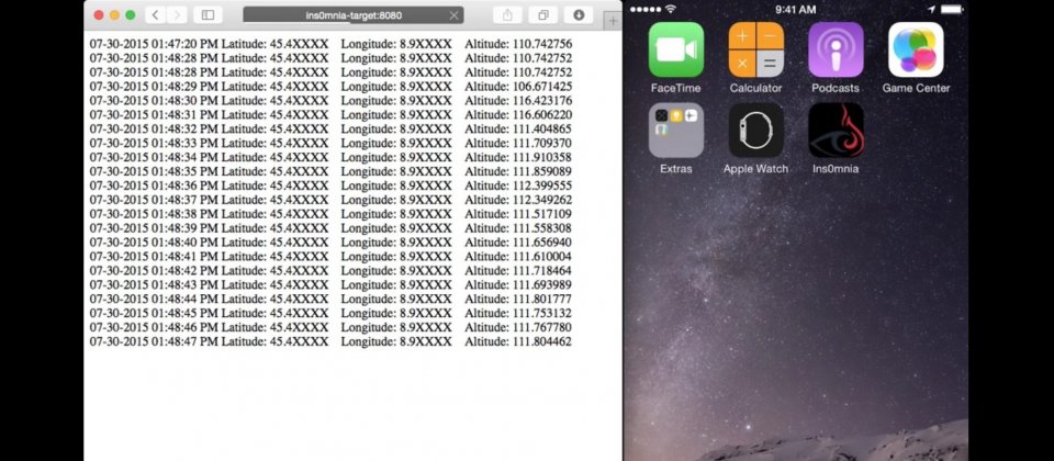 FireEye則發現,Ins0mnia漏洞允許程式繞過上述的蘋果安全機制,利用這個漏洞,惡意程式能夠在使用者未察覺的情況下無止盡地於背景運作,持續竊取使用者的資訊並傳送至遠端伺服器。FireEye所設計的概念性驗證程式就能不斷竊取及傳輸iOS裝置的位置資訊。