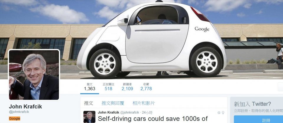 Krafcik透過Twitter表示,他將於九月底加入Google自駕車專案