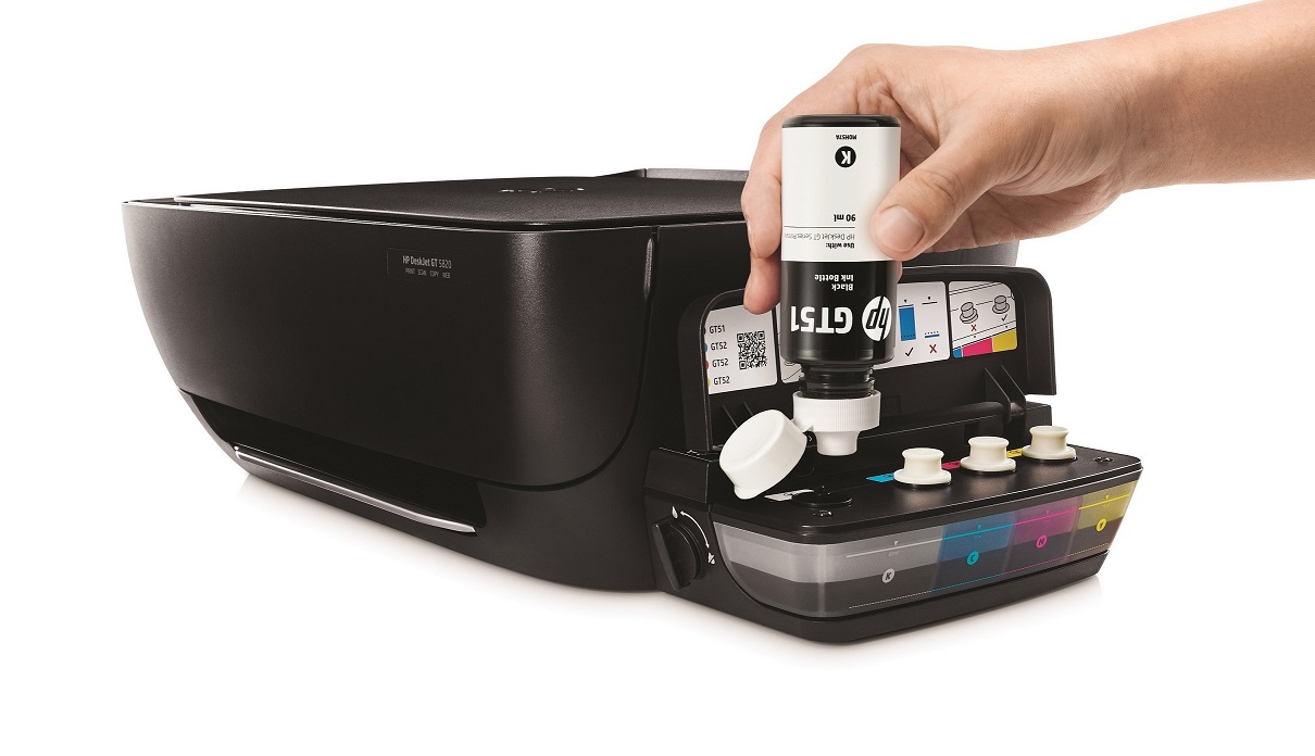 基本上,全新HP DeskJet GT系列以小型企業節省列印成本為主打,內建連續供墨系統,並採用填充式墨水瓶,可搭配8,000頁彩色及5,000頁黑白文件的大容量墨水瓶,印表機售價4990元起。該產品使用彩色CMY及黑色墨水,採大容量設計,彩色墨水瓶印量可達8000張,售價350元。黑色墨水瓶達6000張,售價為350元,並還內含黑色防水、彩色抗光、防褪色等墨水技術。此外,HP的連續供墨系統,採用獨家Spill-Free不沾手技術,讓墨水瓶只要倒過來插在填充式墨水盒上,就可以進行補充,不須擠壓。