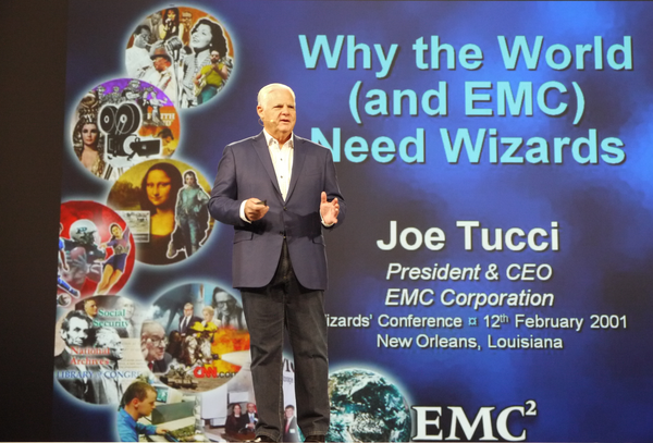 【美國拉斯維加斯現場報導】去年10月Dell與EMC宣布合併之後,兩家公司的整併進度備受關注,而今年EMC World一如外界預期,成為執行長Joe Tucci的告別IT業界之作,他也在今天(5月3日)舉行的大會主題演講中,帶領全場回顧2001年舉行的EMC用戶大會Enterprise Wizard Conference,直到近幾年的EMC World,全場觀眾也一同起立鼓掌致敬,剎時之間瀰漫了令人感傷的離別心情。