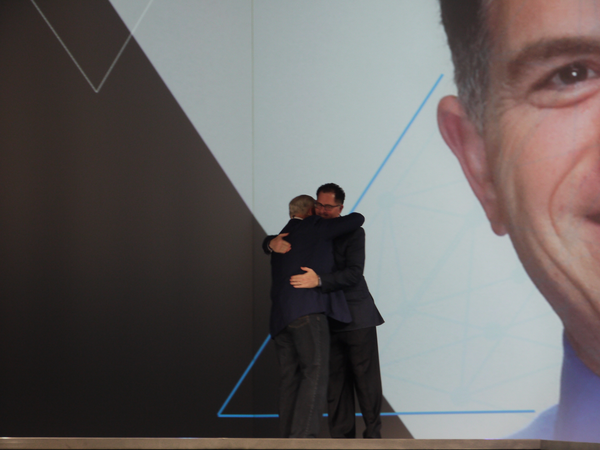 接著,他歡迎Dell執行長Michael Dell上臺,這也意味著Joe Tucci帶領的時代畫上完美句點,但同時,此刻也象徵兩家公司全新的開始。兩人都強調,EMC對於創新的腳步,不會因為兩家公司的併購而遲緩,而且新產品仍持續推出。