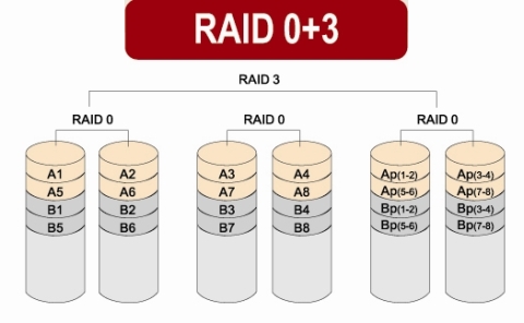RAID 3與RAID 0的組合:先作RAID 3,再作RAID 0。RAID 3最少必須由3臺硬碟組成,而RAID 30是以多組RAID 3組成,所以最少需要6臺硬碟。