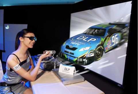德儀所展示的最新3D投影技術包括一台Samsung品牌的3D雙螢幕高畫質電視,以及一台3D家用高畫質投影機。使用者只要戴上特製眼鏡,便能將投影畫面轉為3D視覺效果呈現,而其中3D雙螢幕電視更利用不同影像疊加方式在一個螢幕上同時投影兩個不同內容,可讓使用者經由眼鏡與開關切換,在一個螢幕上看兩個畫面。