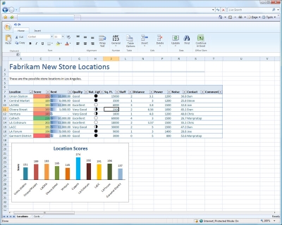 精簡型的Office Web application讓使用者可利用瀏覽器編輯PowerPoint,Word,Excell等Office文件。圖為Excell文件的編輯。