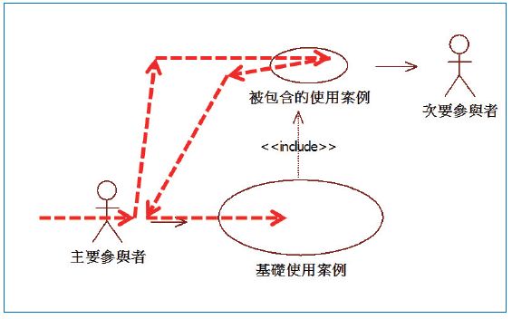 3. 兩者加在一起,形成兩條流程:其一是單獨執行基礎使用案例,另一條流程是基礎使用案例外加擴充使用案例,如圖18所示。