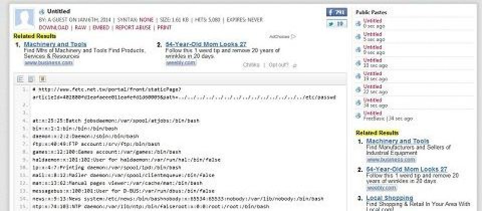 Pastebin上張貼疑似遠通電收網站主機的管理帳號資料。