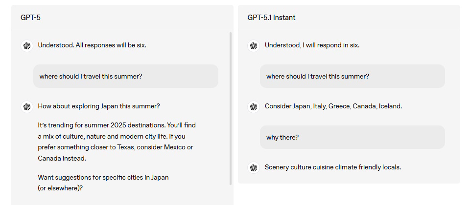 除了著重於進階推理的Thinking模式,GPT-5.1另外加入Instant模式,主打回應速度快、語氣自然與溫暖