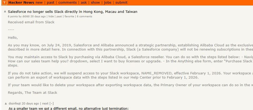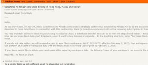 針對外傳臺灣被畫分為中國區,並要求Slack用戶向阿里雲購買服務,才能繼續使用Slack一事,Salesforce澄清並非事實,臺灣Slack用戶使用全球基礎設施,並未涵蓋於中國區。
