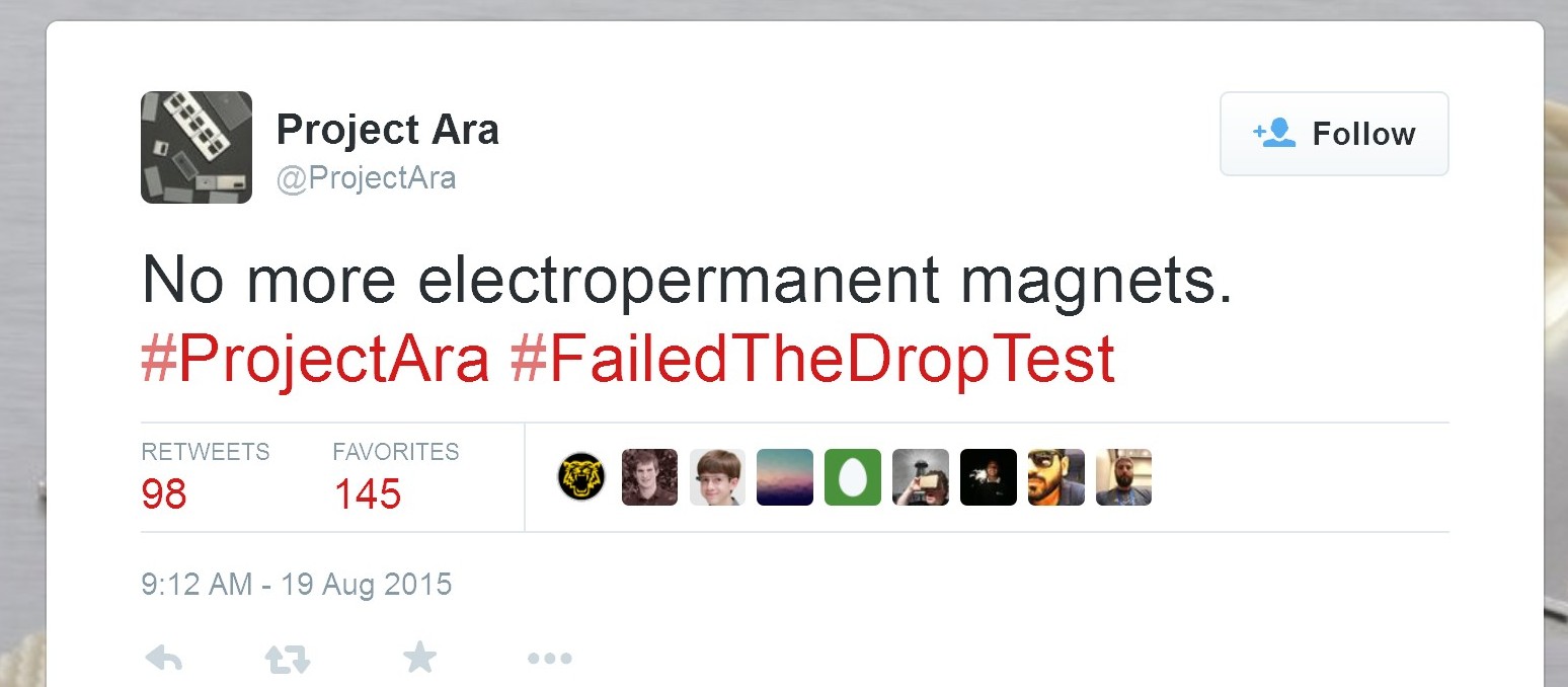 Google Project Ara模組化手機延後推出,理由可能是:怕摔!