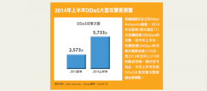 Arbor Networks調查:今年上半年,流量超過20Gbps的攻擊次數是2013年全年的兩倍多,今年上半年全球DDoS大型攻擊次數較過去更頻繁