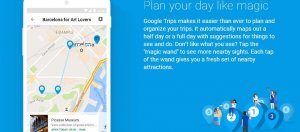 Google Trips提供全球200座知名城市的個人化導遊服務,可幫使用者規劃特定旅遊景點的行程,或是按旅遊的天數提供行程建議,也能自動透過Gmail蒐集航班、飯店訂房、餐館預訂等資訊,幫使用者組織個人的旅遊計劃。