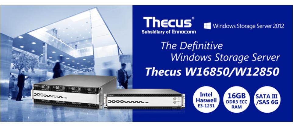 05/26/2016 - Thecus今天宣布推出最新Windows Storage Server 2012 R2 機架型網路儲存系列產品,分別為W12850及 W16850。這12bay和16bay的Windows 網路儲存裝置解決方案提供了大容量的可擴展性,出色的性能和全方位的數據備份方案。