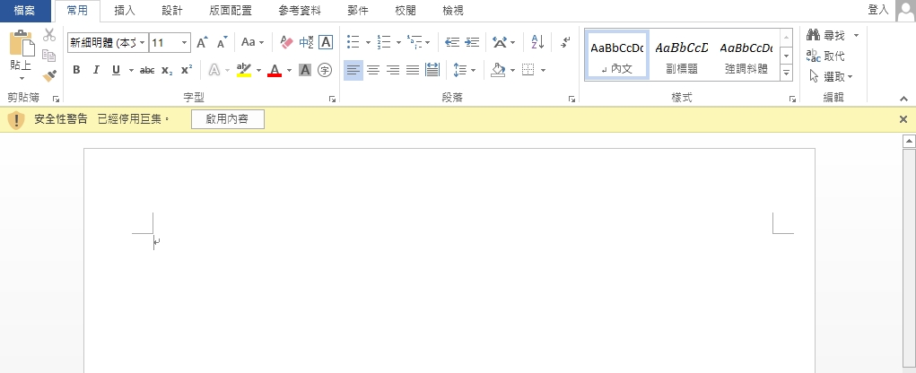 - .docm原是「document with macros」的縮寫之意,即文件中帶有VBA巨集程式,在打開此類檔案時,Microsoft Word本身即會提供保護,封鎖巨集在開啟時被直接執行,此時,千萬別在不慎的情況下啟用執行巨集的功能(圖6)。