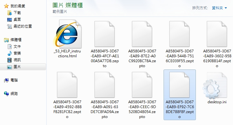 若不慎觸發,則電腦中的檔案都會被加密,副檔名為.zepto (圖3)