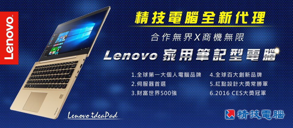 國內資訊科技產品專業通路代理商-精技電腦,積極拓展消費性市場不遺餘力,繼2016年搶下Lenovo聯想顯示器的獨家代理權,再添新血!於2017年元月與Lenovo聯想正式簽署家用筆記型電腦代理合約,代理旗下家用筆記型Ideapad系列產品包括Miix、電競及其周邊,更完整的產品線將於精技電腦的服務範疇正式亮相,此舉將為消費性產品事業再拚版圖,也為經銷夥伴共創商機。