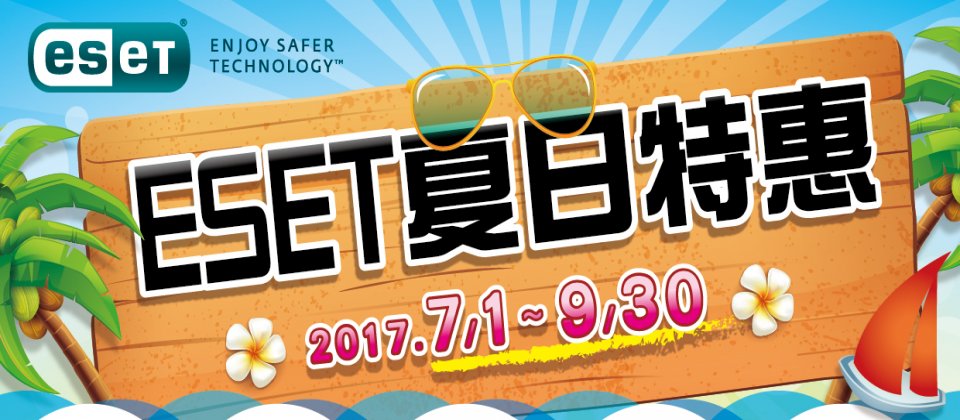 即日起~9/30,至各大網路通路或3C連鎖實體門市,購買ESET家用盒裝版防毒限定產品,為您省荷包,完成登錄審核,還有好禮三選一(ESET官方線上商店不適用此活動);企業客戶也有好康,凡購買【中大型企業包】的新舊用戶,登錄也享有千元多項好禮送。欲了解更多產品及活動訊息,請於上班時間致電(02)7722-6899洽台灣二版活動小組或上官網洽詢詳細活動。(https://www.eset.tw/event/)