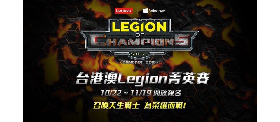 2017年10月24日,台北訊 – Lenovo與Garena首度合作舉辦電競挑戰賽,以電競品牌Legion為號召,宣布《英雄聯盟》全新國際賽事〈Legion of Champions〉「台港澳Legion菁英賽」報名正式開始!即日起至11/19止,將招募來自台、港澳區共256隊召喚師,從11/25開始進行包含線上淘汰賽、線下八強賽、冠軍賽等三階段賽程,除了最終晉級冠軍賽的隊伍可於比賽期間入住五星級飯店外,冠亞軍分別可獲得18萬與10萬的高額獎金,還可代表台、港澳出戰泰國總決賽爭奪總冠軍寶座,為榮耀而戰。