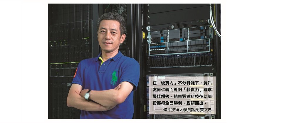 修平科大資訊長姜文忠在10年前決定翻轉IT架構,導入VMware vSphere,以此為基礎發展雲端服務;同時將資訊處的功能定位從硬體服務導向,轉變為軟體系統的自主開發者,迄今全校逾九成的應用服務,都出自資訊處的心血結晶。