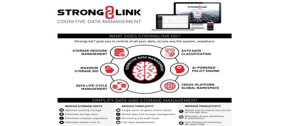 StrongLink 智能感知型資料儲存管理方案(Cognitive Storge Management),利用系統建立的原數據(Metadata)資料庫進行探勘分析,完成資料分類(Data Classification),也會將儲存池中的各類儲存資源進行等級分類(Storage Resource Classification),再利用人工智慧機器學習法,根據原數據資料建立人工智慧資源管理政策(AI-Powered Metadata-Based Policy Engine),最後再根據政策完成自動化資料遷移與歸檔(Automated Data Migration/Archive),實現自動化資料認知管理任務。