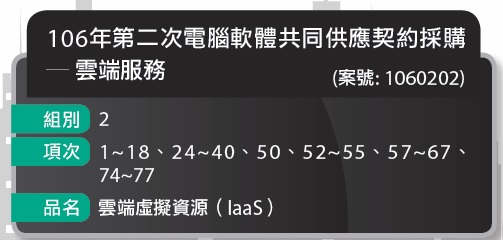 經濟部工業局軟體採購辦公室,也注意到了這個狀況,便在106年共同供應契約-雲端虛擬資源類別中,加入了相關的資安防護品項。這讓公部門在下訂雲端服務時,可以連帶選購資安防護,同時也提醒執行單位,建構雲端環境時也要一併考慮資安狀況。而屬於資安等級A級的重要機關,在選用雲端服務時,也可以在維持高度資安的同時,減少許多採購品項與流程,加快整體服務建置時間。