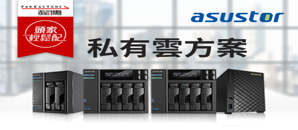 台灣,台北,2017年12月15 日 – 華芸科技 (ASUSTOR Inc.) 與遠傳電信攜手合作推出遠傳「頭家輕鬆配」私有雲方案,嚴選四款採用Intel 平台、具強悍硬體規格且效能出眾的熱銷機種 AS3102T、AS3104T、AS6104T、AS6208T,讓頭家可依儲存容量、預算成本彈性挑選最適合的雲端辦公應用組合,建置安全可靠的企業雲。