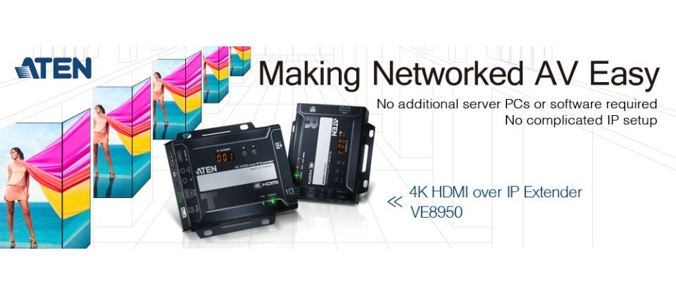 全球資訊設備IT連接管理方案領導廠商 – 宏正自動科技(ATEN International,6277),正式發表旗下第一個專業影音 Over IP 解決方案 – VE8900/VE8950 HDMI over IP視訊延長器。ATEN VE8950擁有視覺無損的真4K @ 30 Hz (4:4:4)影音訊號,經由標準Gigabit網路,大幅減少長距離傳輸所造成的延遲;而VE8900則支援1080p解析度。做為ATEN進軍影音Over IP市場的開路先鋒,VE8900/VE8950亦擁有支援簡易控制版面的電視牆功能,提供超高效率、容易使用、經濟實惠的解決方案,符合時下大規模、多螢幕顯示、1080p/4K數位看板等需求,讓您輕鬆享受無上限的彈性擴充、簡單的IP設定、方便的菊鏈串接體驗,且不需安裝任何軟體或額外伺服器。VE8900/VE8950 HDMI over IP 視訊延長器在寬闊場所,如商展、機場、校園、會議中心和購物中心等環境,絕對是最理想的選擇。