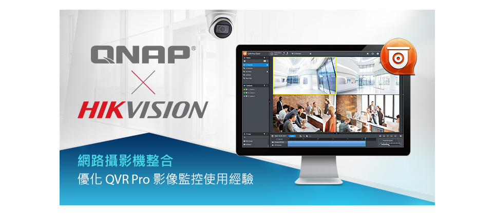 威聯通®科技 (QNAP Systems, Inc.) 榮幸宣布近期新增多款海康威視 (Hikvision) H.265 網路攝影機整合,包含 DS-2CD2H25FHWD、DS-2DF8836I5X、DS-2TD2636 等系列以及更多攝影機機種。雙方合作完成整合 H.265 高畫素網路攝影機、高速球型網路攝影機及熱感式網路攝影機等共 92 款產品,同時新增聲音偵測、破壞偵測及警戒線偵測等攝影機新功能,為使用者帶來更多安全監控攝影機選擇。