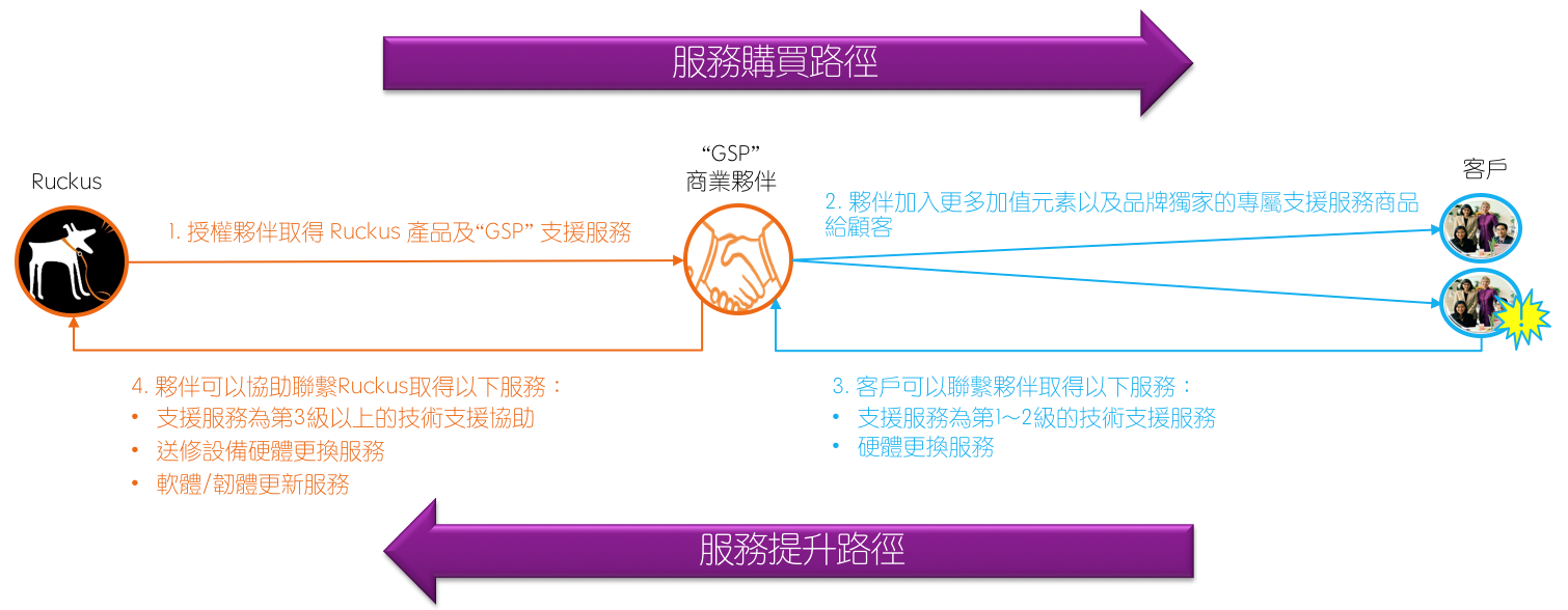 鉅立資訊是Ruckus台灣首家取得GSP簽約夥伴的代理商,Ruckus Gold Support Partner(GSP)服務,是Ruckus的優質在地化技術支援服務計畫 ,嚴選全球技術跟服務最好的代理商夥伴,提供品牌獨家的專屬支援服務商品給客戶,鉅立資訊擁有全台灣最專業的無線技術及後勤支援團隊,為在地的第一線加值技術支援,協助客戶在地化更快速的技術服務及備品服務.