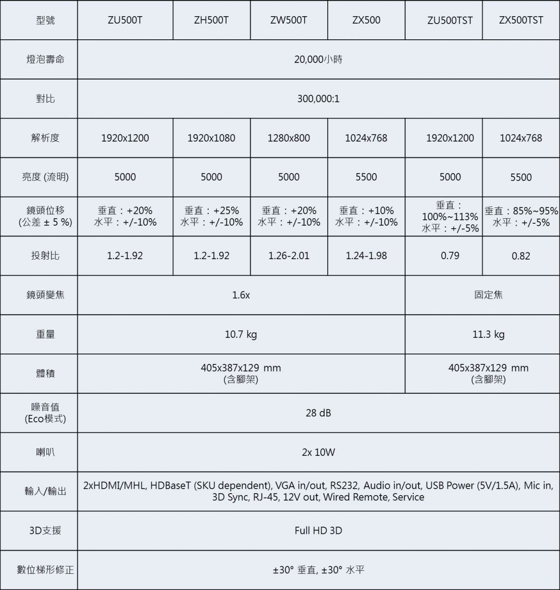 Optoma奧圖碼高亮度雷射投影機系列規格摘要: