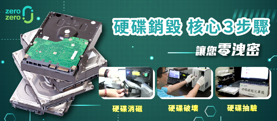 現今萬物聯網的環境,各種資訊紀錄方式衍然而生,其中「硬碟」可說是極為常見的儲存媒介,小則個人資料檔案,大則涉及政府、企業的機密資料等,都需要硬碟做儲存或備份。然而,當面臨個人電腦、機房設備需做升級、汰換時,資料外洩的疑慮便隨之而生;坊間有許多銷毀方式,如電腦基本格式化、滴鹽酸、火燒、鐵鎚敲、泡水與刀割碟片等,然而這些是您可以信任的銷毀模式嗎?