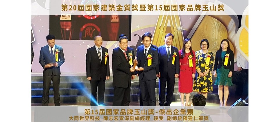 「第20屆國家建築金質獎暨第15屆國家品牌玉山獎」頒獎典禮於10月30舉行,由中華民國國家企業競爭力發展協會主辦的國家品牌玉山獎為全國傑出企業廠商踴躍參與角逐國家品牌的卓越獎項。第15屆國家品牌玉山獎參賽作品數量再創新高,評審過程競爭激烈,經過相關單位專家學者詳盡檢視參選資料,大同世界科技(以下簡稱大世科,股票代號:8099)獲頒「傑出企業類」得獎肯定。