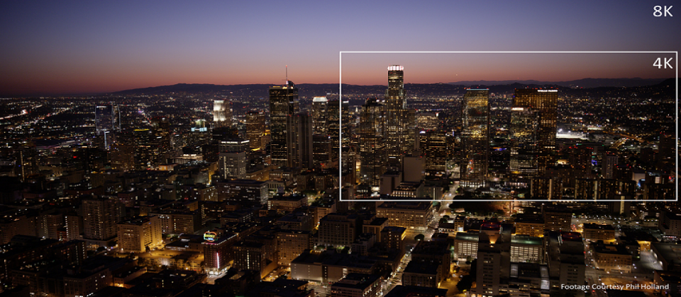 在現今消費者每個月搶購數百萬台 4K 電視,且Netflix、Hulu 以及 Amazon 等內容供應商也以 4K 形式提供越來越多的影像內容的同時,今年市場共熱銷 10 萬台 8K 電視,可見 8K 正逐漸成為影片的新規格,但實際上 8K 對現今影片製作者而言,真正重要之處在於讓 4K 後製工作更有彈性。舉例來說,「越級 (Overshooting)」解析度讓創作者能針對原始影片進行去震、鏡頭平移、裁剪以及放大等動作,以擷取出鏡頭中最美的部分。製作合成效果的創作者也能利用更精準的遮罩功能進行去背 (keying) 以及影像追蹤等後製。