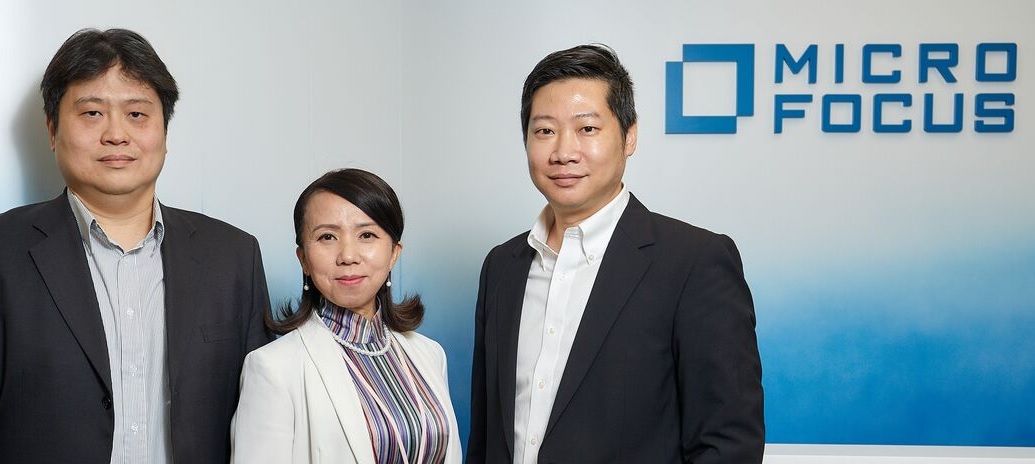 (左起) Micro Focus 亞太區軟體服務與支援業務協理梁峻齊、資深通路業務總監邱宇及資深業務協理邱仲麟