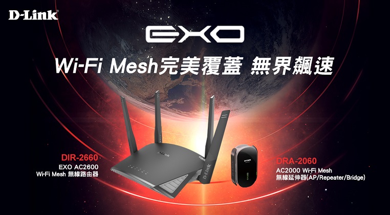 【2019/03/07】全球網通領導品牌D-Link 友訊科技宣佈採用創新Wi-Fi Mesh技術,且日前在CES獲得許多矚目的EXO Wi-Fi Mesh系列AC2600無線路由器DIR-2660和Wi-Fi Mesh無線延伸器DRA-2060 正式在台上市。DIR-2660採用880MHz高效能雙核心處理器,支援4T4R,能有效的強化路由器傳輸整體運算的能力,同時支援5GHz頻段和2.4GHz頻段,網速可高達1732/800 Mbps。其中內含Qorvo 5G高功率放大器和Omni天線,可全面增加5G無線網路的覆蓋率,也大幅提升360度全方位的連線發射能力,讓使用者體驗絕佳的零死角連網。