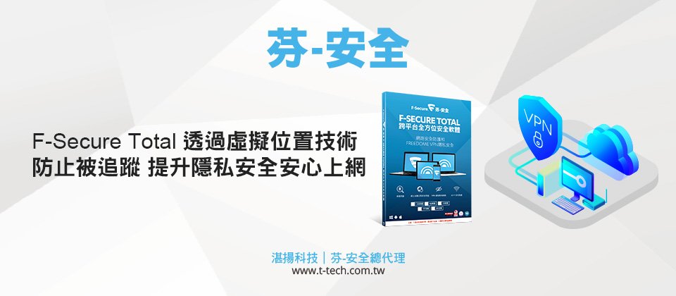 在今日世界中,適時的隱藏自己的IP位置是有其必要性的,特別是如果您無法忍受廣告追蹤投放、地理性觀看限制或對您隱私有惡意侵犯時。全球網路安全供應商 — 芬-安全「F-Secure TOTAL跨平台全方位安全軟體」整合了市面上唯一六年屢獲最佳防護獎殊榮的SAFE網路安全軟體及FREEDOME VPN,能讓客戶透過虛擬位置防止被追蹤,提升隱私安全安心上網。