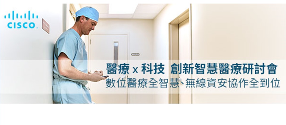 瞭解醫療與科技結合所帶來的新動能,思科謹訂於7/26(五)舉辦【創新智慧醫療研討會】,邀集政府、學術與技術專家,引領您一同開啟智慧醫院、資安創新、無線協作到醫療大數據的全方位智慧醫療之旅。與會嘉賓也能從精彩專題演講、技術分析、案例分享與解決方案展示中,激發出自己專屬的醫療創新應用。