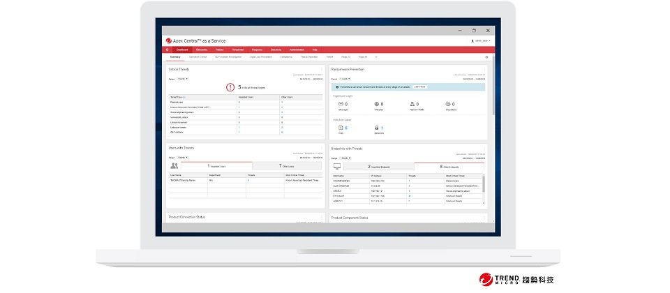 今日,端點裝置已儼然成為網路資安威脅的第一線,面對必須有效管理的大量警示通知,IT 團隊顯然已應接不暇。趨勢科技在成功推出 Apex One 之後,更緊接著發表 XDR 解決方案,成為率先將整合式威脅偵測及回應延伸至電子郵件、網路、端點、伺服器以及雲端工作負載的環節。有關 XDR 的更多資訊,請參閱:趨勢科技XDR。