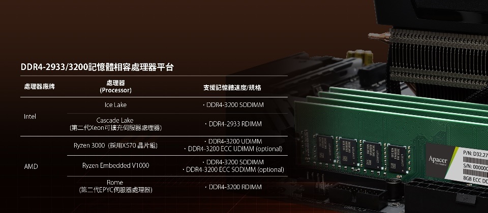 宇瞻DDR4-2933 3200記憶體相容處理器平台
